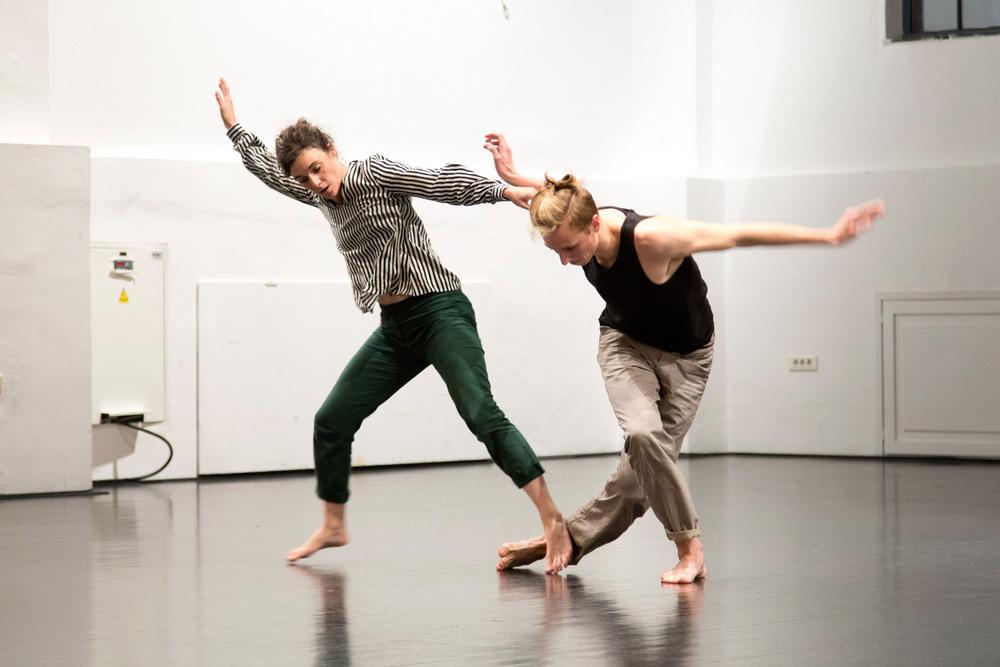 Avtorica Kaja Lorenci v predstavi razmnoži formo dueta z različnimi plesnimi nalogami in konfiguracijami, ki skozi gibalno pretočne koreografske formacije prek nenehnega uglaševanja plesalcev ustvarjajo občutek edinstvene čez-odrske simbioze. Ob tem so tudi koreografski postopki zavezani predvsem fizičnim procesom komunikacije, kar ustvarja filigransko, skoraj micelično povezanost izvajalcev, vključno z zvočno pokrajino predstave. Če lahko po eni strani »duete beremo kot mesta srečanja, zaupanja, negotovosti pa tudi (samo)izgube ali bremena,« kot zapiše Rok Vevar, se avtorica giblje na meji, kjer bi koreografija utegnila stopiti na polje različnih naracij, vendar se dosledno zadržuje v polju koreografskih problemov. Gre za postopek rahločutne deteatralizacije v smislu nenehnega odpovedovanja možnosti dramskega narativa na eni in estetiziranega giba na drugi strani. Kaja Lorenci je plesalka, koreografinja in plesna pedagoginja. Leta 2006 je diplomirala na Salzburg Experimental Academy of Dance (SEAD). Po končanem študiju je kot plesalka sodelovala v predstavah Andreje Rauch Podrzavnik, Mateje Bučar, Gregorja Luštka in Rosane Hribar, Madeleine Karlsson in Aleksandre Stratimirović, Shimrit Golan, Katje Legin, Nataše Berce, Karmine Šilec (Carmina Slovenica). Z avtorsko predstavo Zven telesne tišine (2011) je v sodelovanju z Ivanom Mijačevićem začela razvijati svojevrstno metodo ustvarjalnega dela in pristopa h gibu. Predstava, ki je bila izbrana za Gibanico 2013, je uspešno gostovala na Hrvaški plesni platformi. Več let je poučevala na SVŠGL, umetniški gimnaziji, trenutno pa na AGRFT opravlja magistrski študij iz Umetnosti giba.
